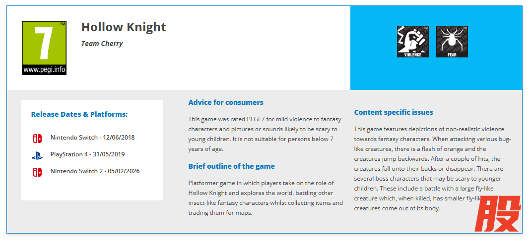 评级机构 PEGI 官网显示,Team Cherry 作品《空洞骑士》评级信息更新,追加 NS2 版本。《空洞骑士》NS2 版计划今年推出,支持高帧率模式、更高的分辨率,还有更好的图像效果。